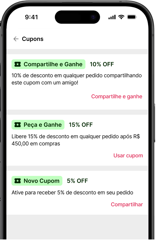 Defina o percentual de desconto e o valor mínimo para resgate dos seus cupons. Eles são benefícios exclusivos do seu restaurante.